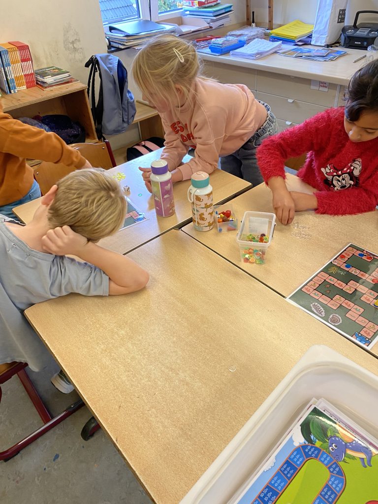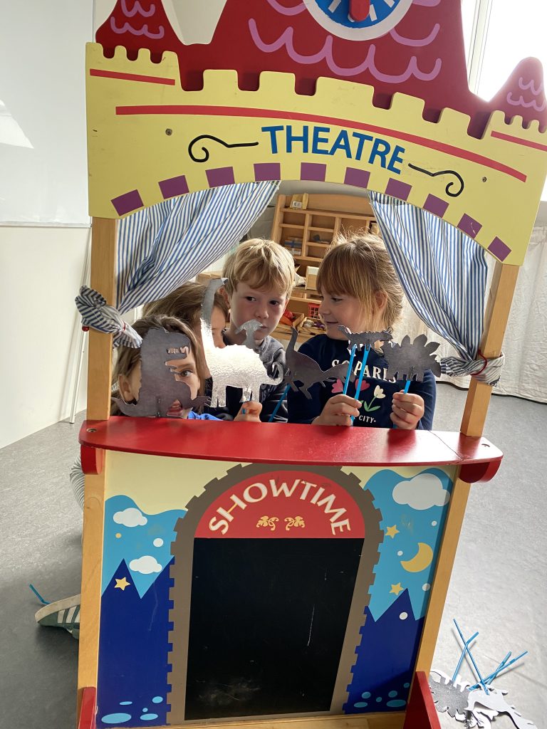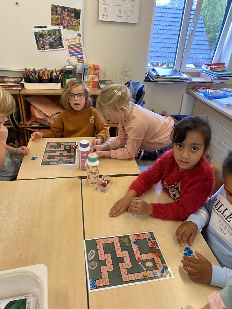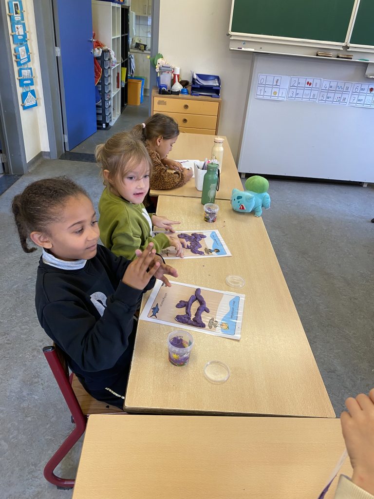 Deze week stond dan ook de ochtendwerktijd al in teken van dinosaurussen: stappenplan teken, kleien, beebots met dino’s, een rekenopdracht met logisch denken, … waren onze moetjes, de magjes waren een schimmenspel, getallentekeningen, spelletjes met dino’s, de dinobibliotheek.